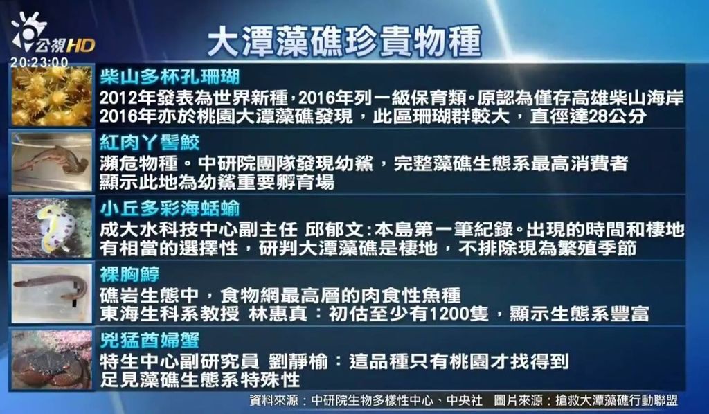 A 跟上面一樣的回覆:以澳洲大堡礁的例子,他們不可能因為有2300公里礁群,就同意建商去蓋個1公里的港口。生態是一個體系,無法這樣切割的。目前僅有台灣的政府 (包前之前的馬政府與現在的蔡政府) 與部份學者認為可以切割。
