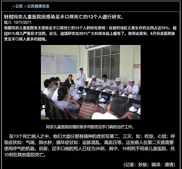 上圖:同奈兒童醫院2011年新聞