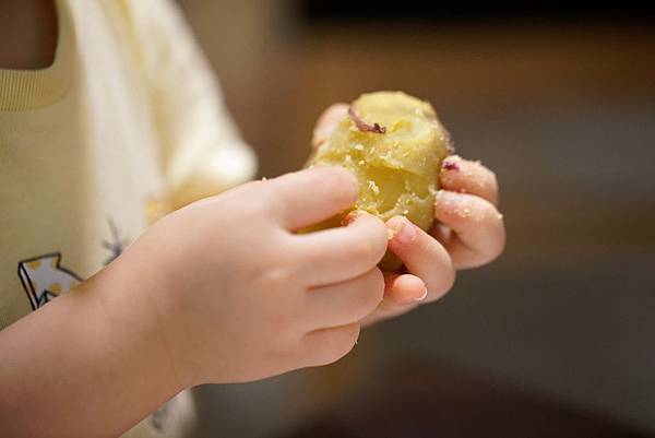 上圖:康復後的姊姊,親手剝地瓜給爸爸吃,給自己吃。珍惜幸福,我們會努力做好教養,以愛灌溉,全家加油。
