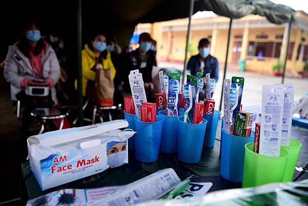 上圖:進入隔離區人員的基本用品。先檢查人員,無病徵時,人們將在該地區停留14天。