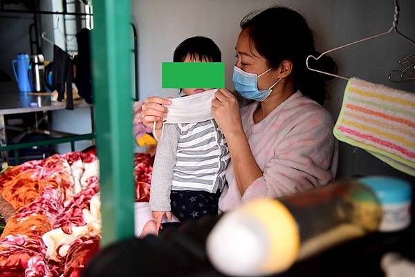 上圖:譚(Tam)和她2歲的女兒前往中國南寧探親,並於2月3日返回越南。當她知道她回越南,會14天與外界隔離,她仍然決定回家。她說:“這很好,可以保護我自己跟我的家人這是應該的” 。她和小朋友待在母親房,三頓餐正常。